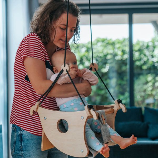 Wenn du den Schutzbezug aus Filz anbringst, wird ein geschlossener Raum eingerichtet, in dem das Kind sicher ist. Aber der Bezug bietet mehrere Möglichkeiten!