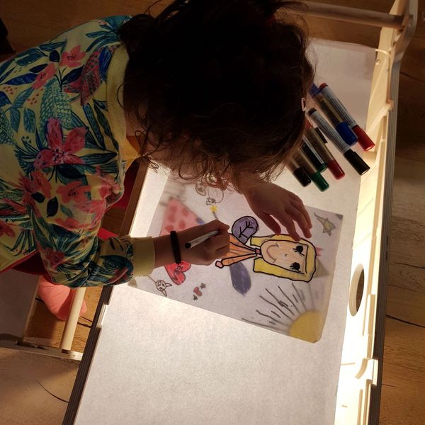 Wenn du auch die durchsichtige Acrylplatte hast, kannst du einen Leuchttisch einrichten!